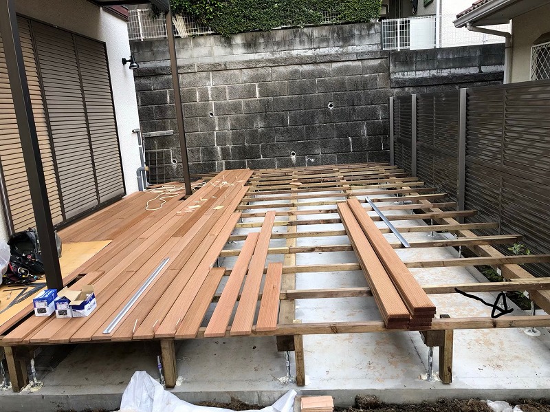 ワンちゃんと過ごしやすい家づくりでは、壁の引っかき防止対策として床材を装着したり、ゲージの増設、ウッドデッキの施工、更には家の外に足の洗い場設置工事など、要望にお応えして幅広く工事を行っております。